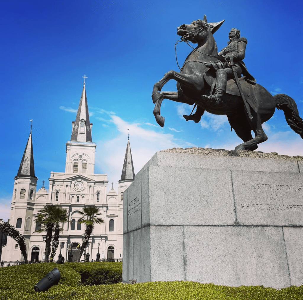 Andrew Jackson enters New Orleans in the shadow of Cathedral-Basilica of Saint Louis, King of France to snatch the city from France in 1815. ⚔️