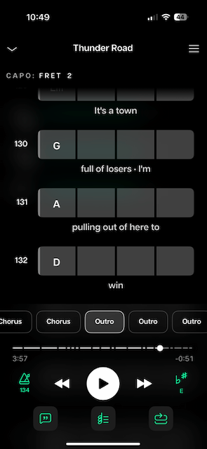 - Get the chords simplified and displayed for in real-time me as the song plays, set at a capo on the second fret (because I just like that sound). So I could just basically play along and record that.