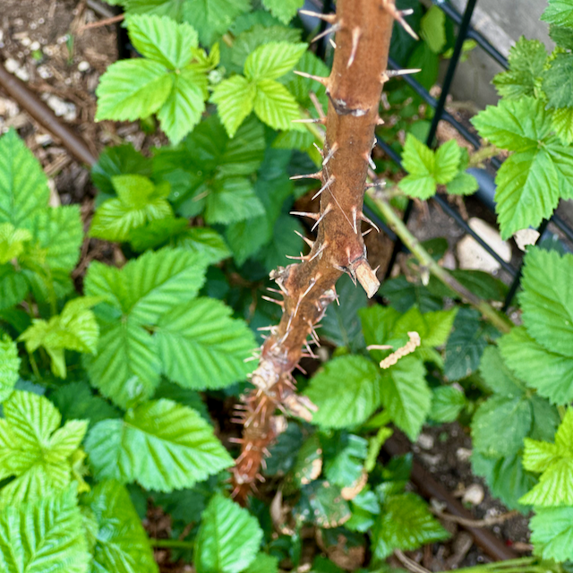 You see, this winter’s cold snap savagely killed almost all the plants . As a memorial, I left a sad, dead, spiky blackberry stalk sticking high out of the ground.