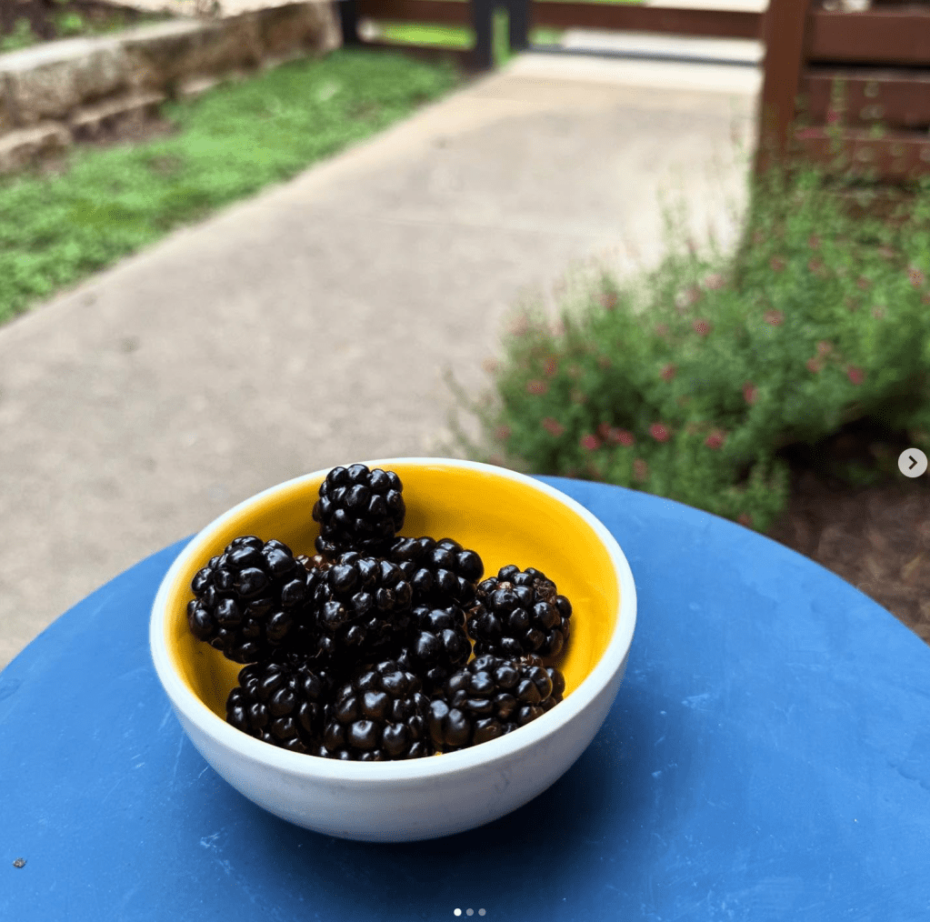 I love stepping out my front door and collecting a handful of blackberries every day. Just have to beat the squirrels out there. 🐿️ #blackberries #urbangarden #berries #austin #texas #atx #shotoniphone https://www.instagram.com/p/DKU7e6BON6V/?img_index=1